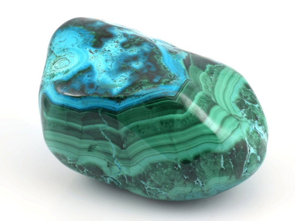 Světle modrý chryzokol se zde prolíná se sytě zeleným malachitem a vytváří fascinující kontrast, díky němuž jsou tyto kusy mimořádně žádané mezi sběrateli estetických minerálů.
