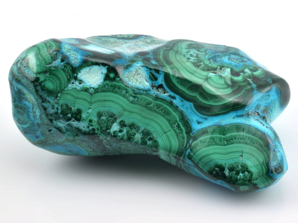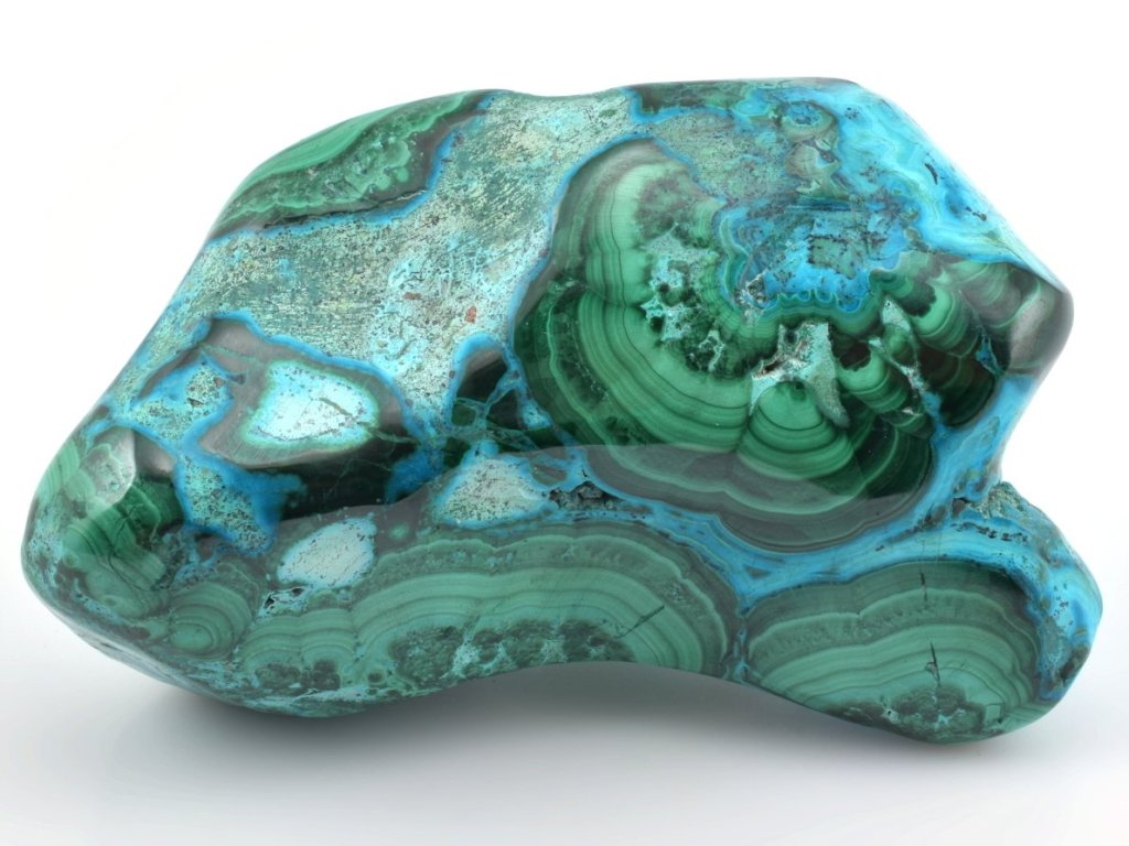 Světle modrý chryzokol se zde prolíná se sytě zeleným malachitem a vytváří fascinující kontrast, díky němuž jsou tyto kusy mimořádně žádané mezi sběrateli estetických minerálů.