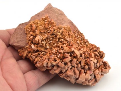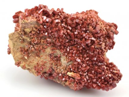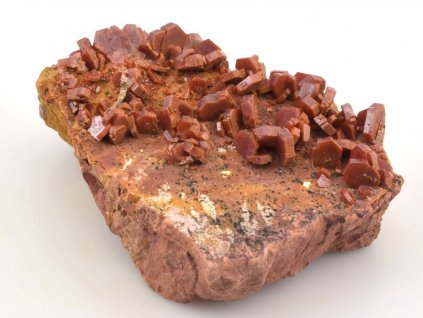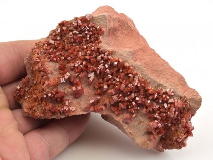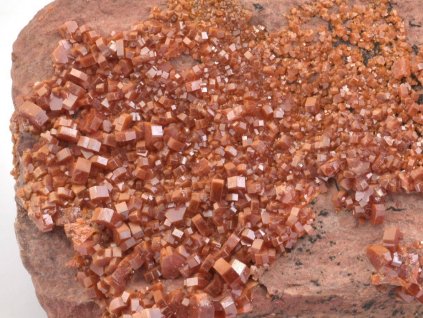 Nabídka vanadinitu a barytu z olověných dolů v Mibladenu v Maroku. Červené (oranžové) hexagonální krystaly vanadinitu z této lokality jsou často narostlé na drúze tabulkovitých krystalů barytu. Jedná se o efektní vzorky, které jistě potěší každého sběratele.
