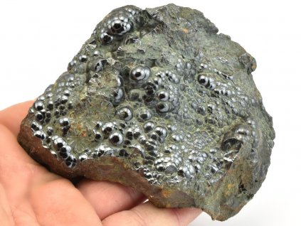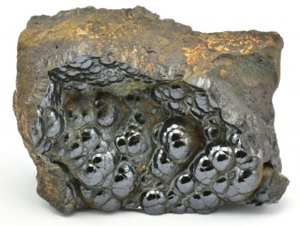 Nabídka ledvinitého, kovově lesklého hematitu. Hematit je významnou rudou železa, jehož obsahuje až 70 %. Chemický vzorec je Fe2O3 (oxid železitý). Naše nabídka je složena převážně z efektních vzorků pocházejících z Maroka.