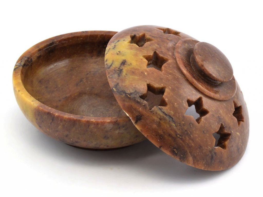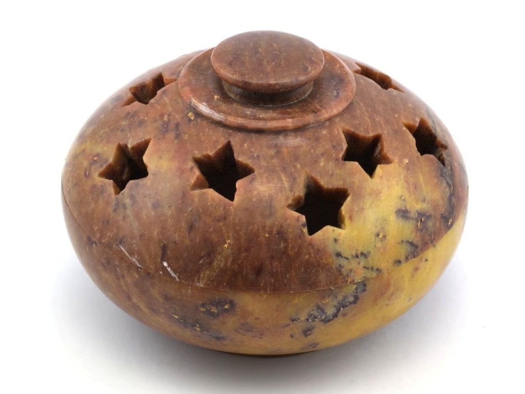 Dóza z mastku s motivem hvězd, vhodná k ukládání drobností, šperků, prstenů, řetízků atd.