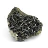 Estetický vzorek drúzy krystalů epidotu z lokality v Íránu, jehož tmavě zelené, sloupcovité krystaly se vyznačují leskem a ostrými hranami.