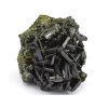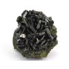 Estetický vzorek drúzy krystalů epidotu z lokality v Íránu, jehož tmavě zelené, sloupcovité krystaly se vyznačují leskem a ostrými hranami.