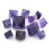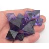 Krystaly fluoritu v naší nabídce mají sytou fialovou barvou a některé mají výrazné zonální rozložením barev a vykazují tak výrazné kontrastní přechody mezi jednotlivými odstíny. Zonálnost u fluoritu je způsobena změnami v chemickém složení během vzniku minerálu. V naší nabídce se jedná o fialové sekané osmistěnné krystaly pocházející z Číny. Fialová barva a zonálnost vynikne nejlépe při jasném světle.