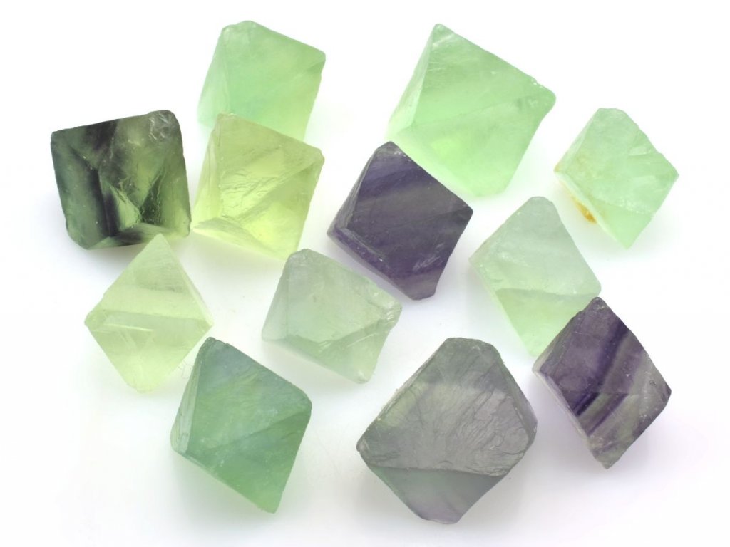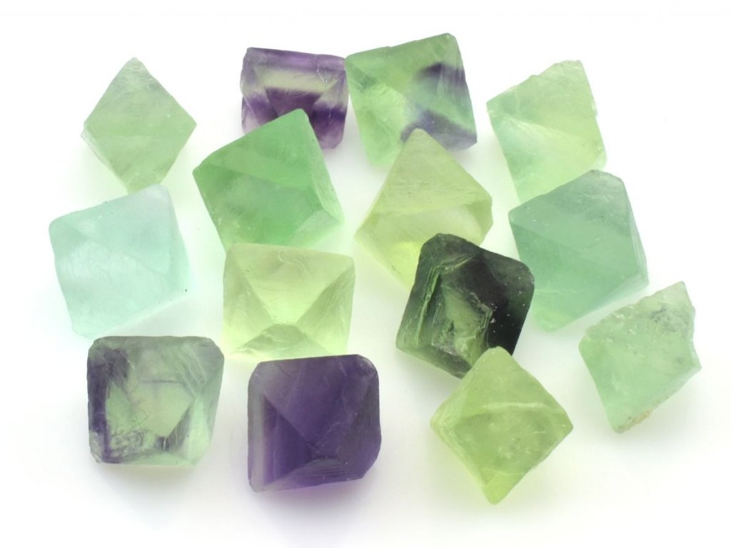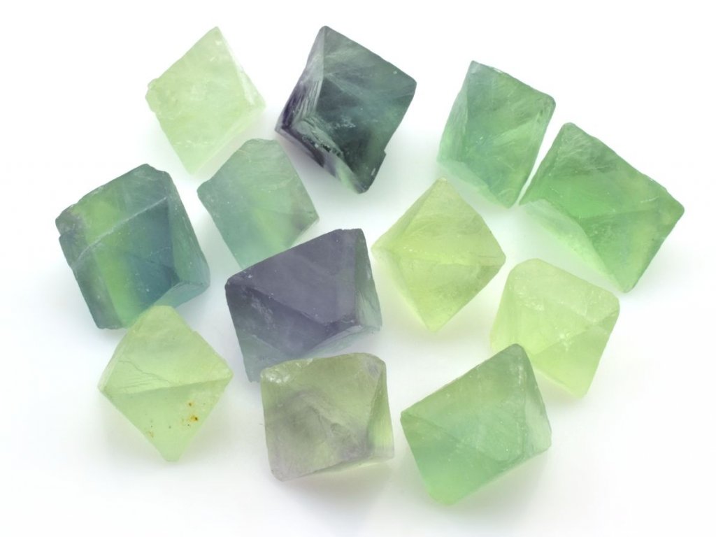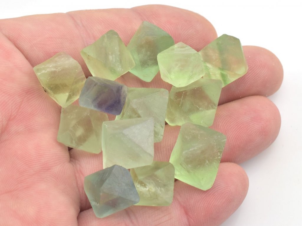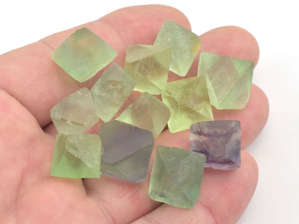 Balení obsahuje přibližně 10 až 15 kusů přírodních fluoritů o velikosti 1,2 až 2,0 cm. Jedná se o štípané osmistěny pocházející z Číny, které jsou vybírány dle aktuálních skladových zásob. Na fotografiích jsou zobrazena skutečná balení o této gramáži.