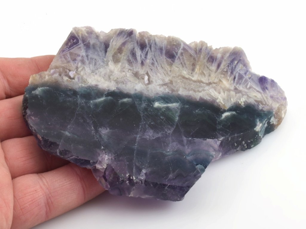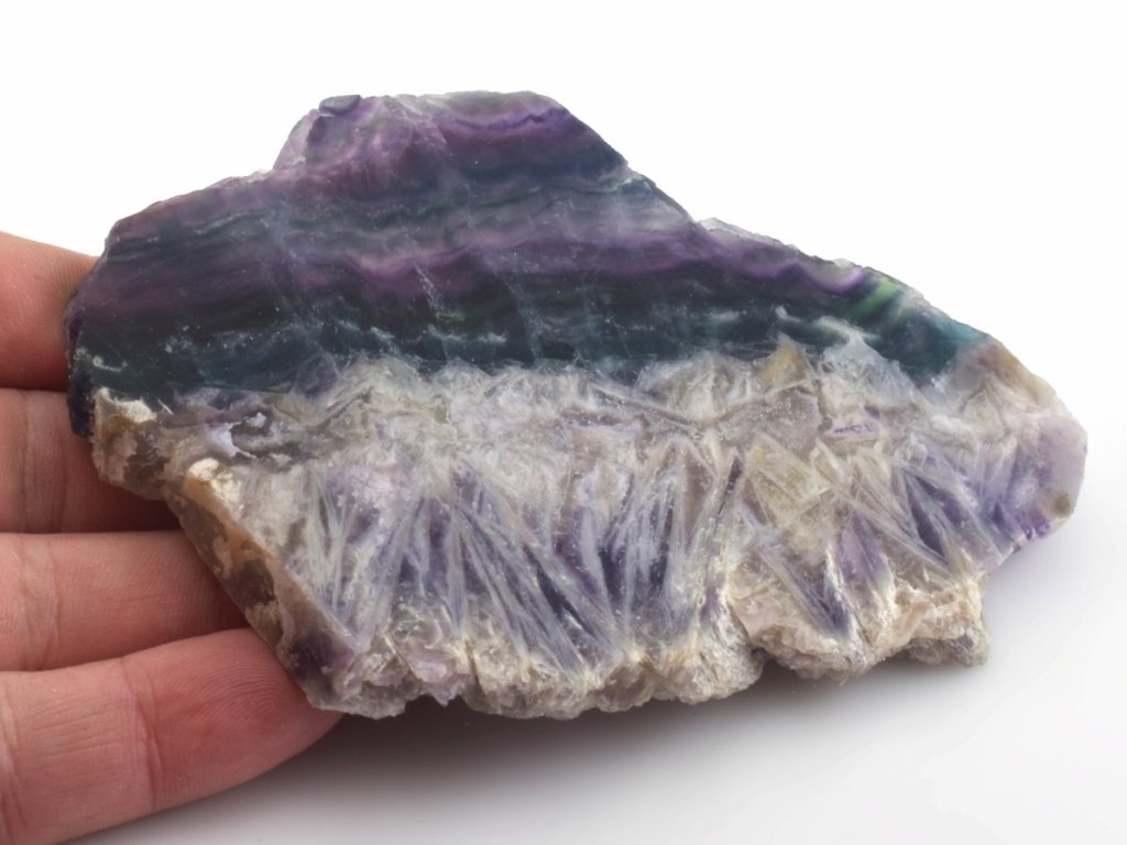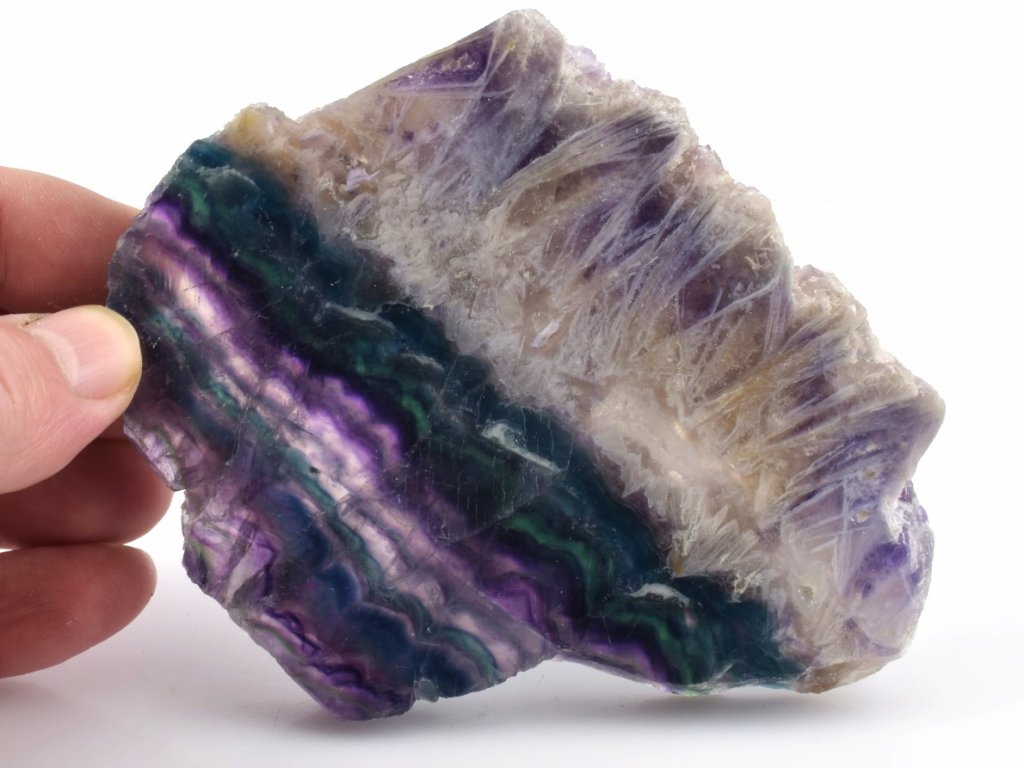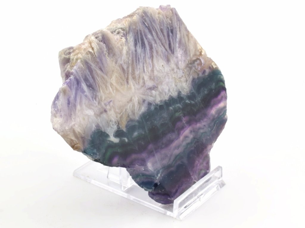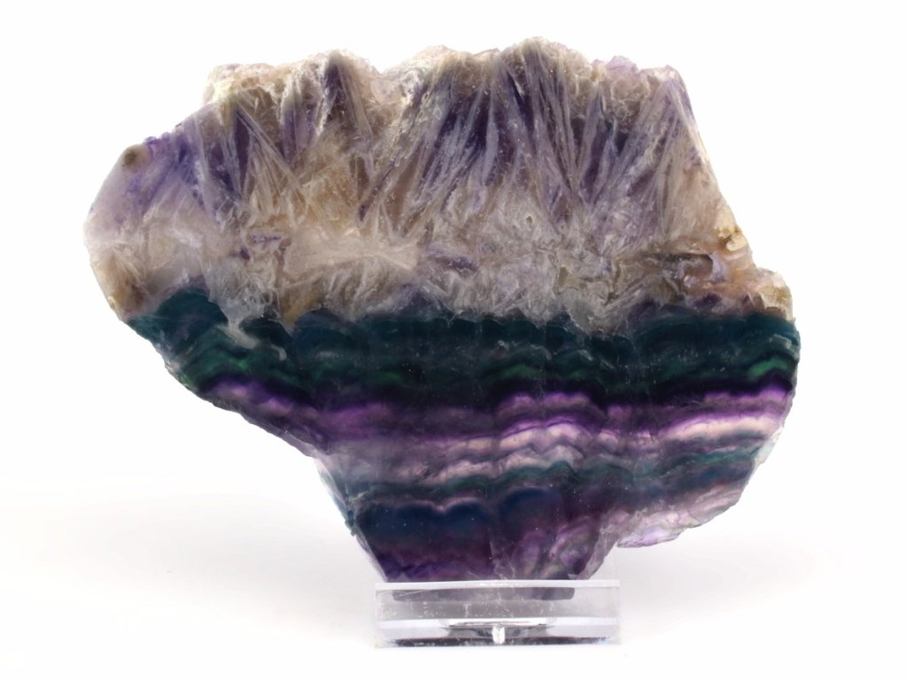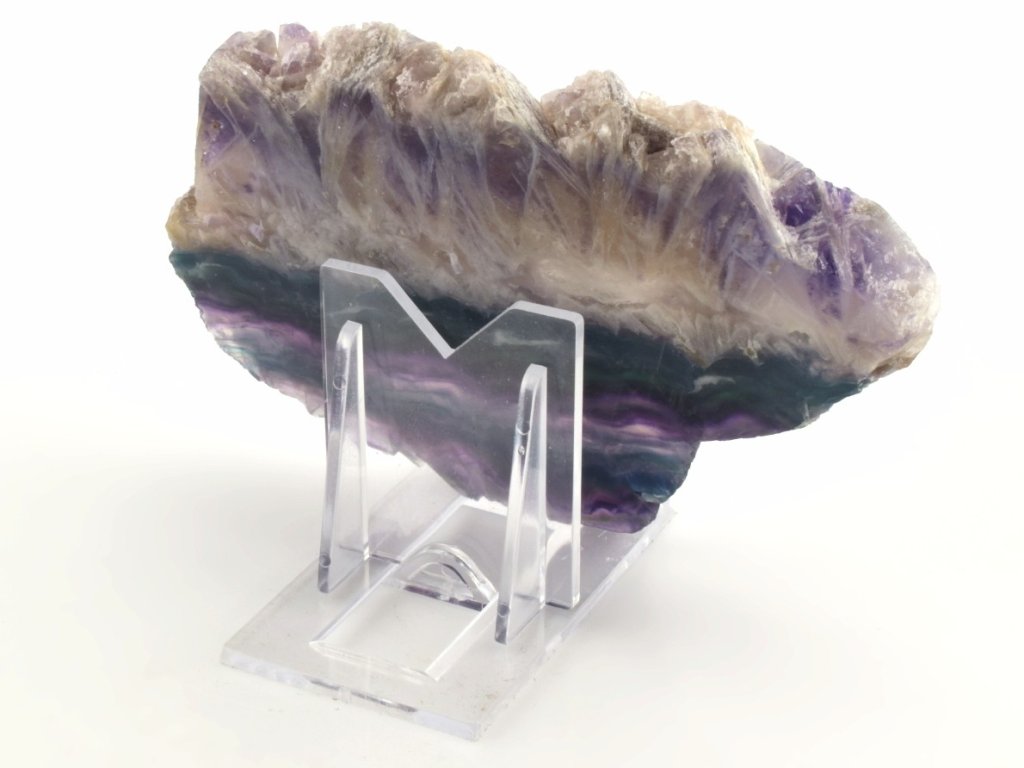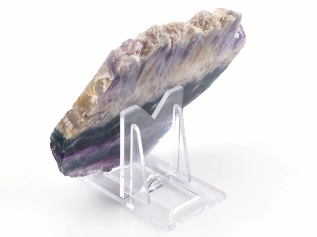 Jedná se o barevně velmi zajímavý kus, leštěný přírodní fluorit se zonálním zbarvením a prolínajícími se barvami, vhodný jak pro sběratele minerálů, tak i pro esoterické použití či dekoraci domácího interiéru nebo pracoviště. Součástí balení je čirý plastový stojánek pro vystavení.
