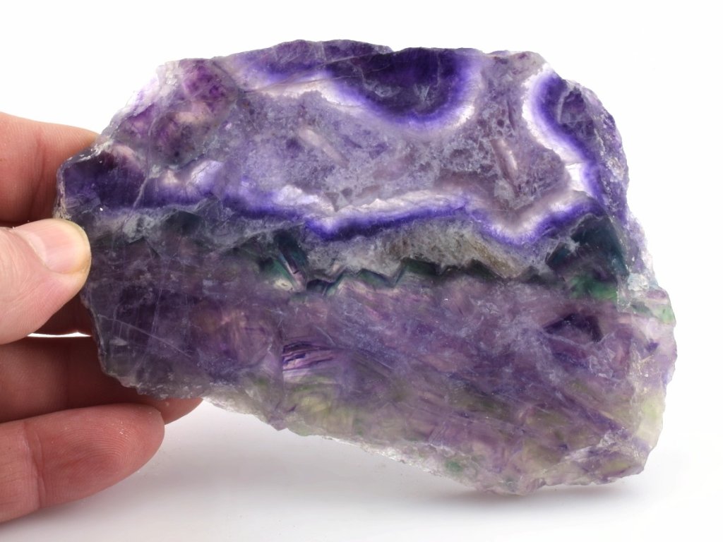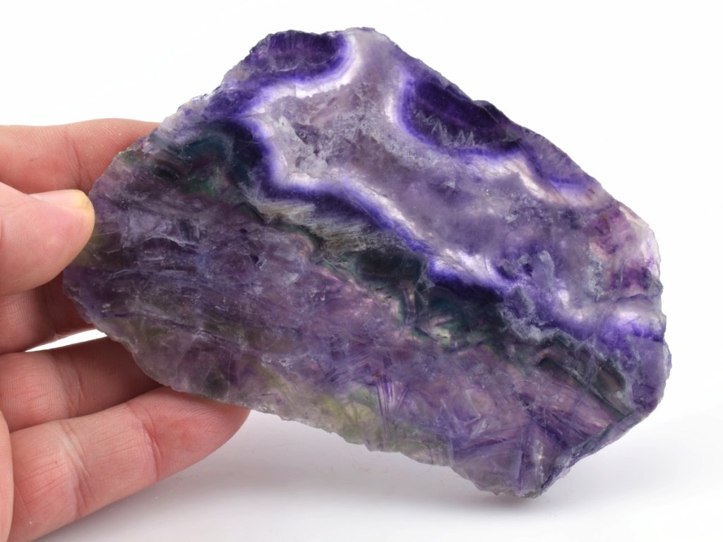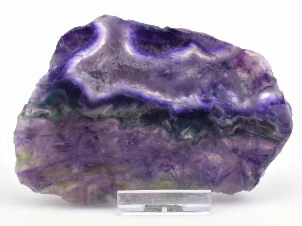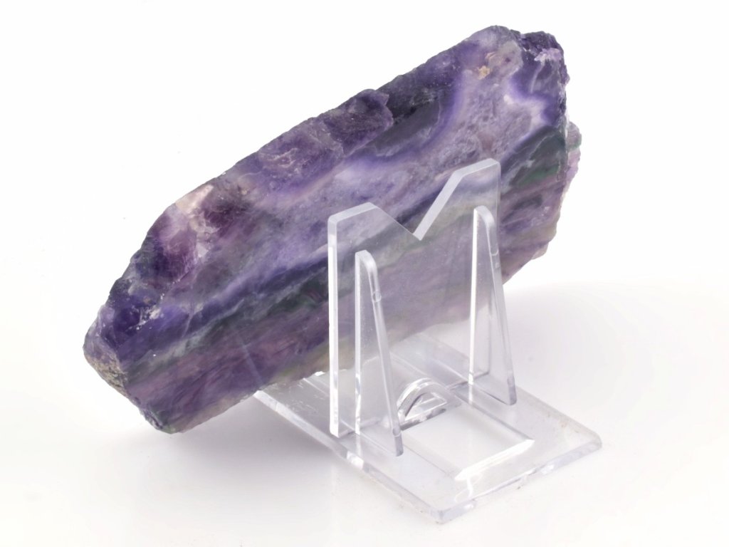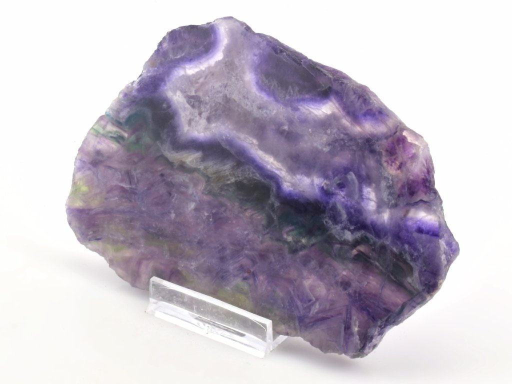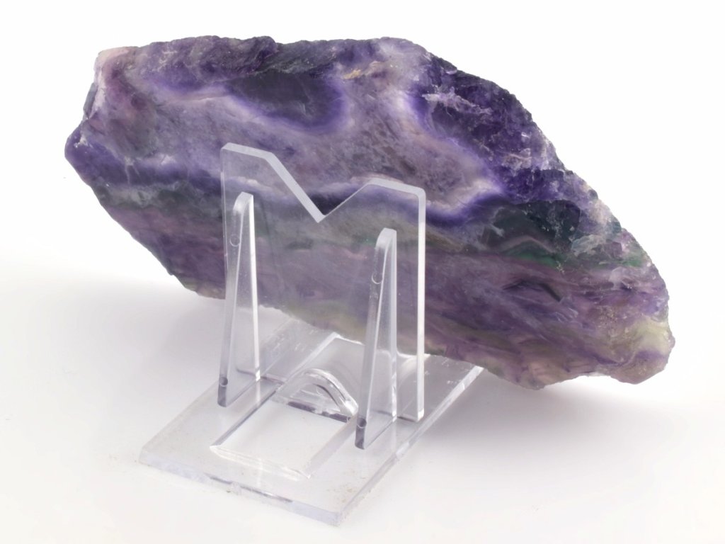 Jedná se o barevně velmi zajímavý kus, leštěný přírodní fluorit se zonálním zbarvením a prolínajícími se barvami, vhodný jak pro sběratele minerálů, tak i pro esoterické použití či dekoraci domácího interiéru nebo pracoviště. Součástí balení je čirý plastový stojánek pro vystavení.