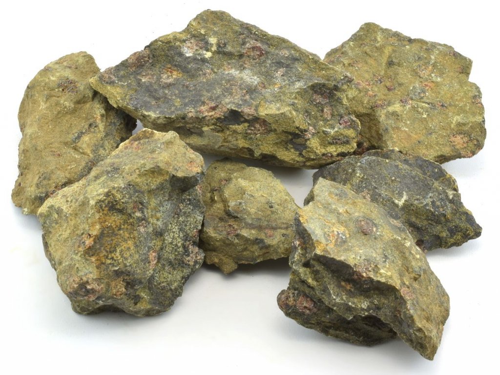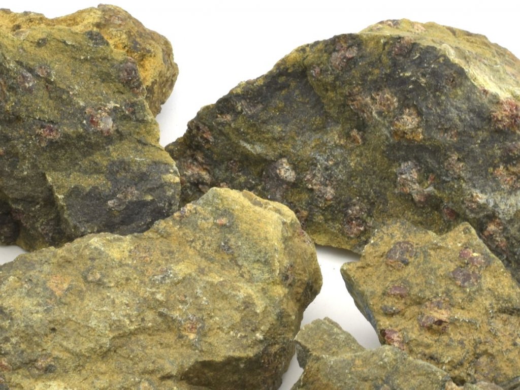 Nabízíme balení zvětralých granátů zarostlých v hadci o hmotnosti 0,5 kg, pocházejících z mineralogické lokality Znetínek na Vysočině. Každé balení obsahuje přibližně 6 až 10 kusů granátů o velikosti 4 až 8 cm. Jedná se o přírodní minerály, které jsou pevně vrostlé do matečné horniny (hadce).