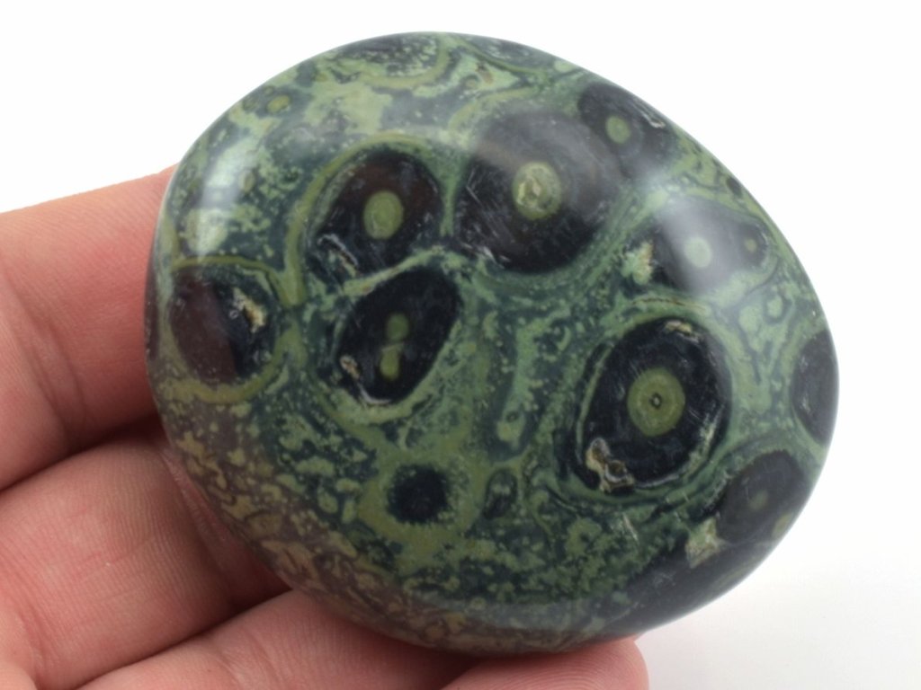 "Jaspis kambaba" neboli eldarit je charakteristický zelenými kruhy na černém pozadí. Ačkoli se často tvrdí, že jde o prokřemenělý fosilní stromatolit, německý institut (EPI) prokázal, že jde o vulkanickou horninu ryolit. Přesto jeho krása zůstává nepopiratelná, a díky své svěží zelené barvě zdobí interiéry po celém světě.