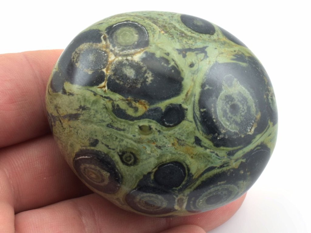 "Jaspis kambaba" neboli eldarit je charakteristický zelenými kruhy na černém pozadí. Ačkoli se často tvrdí, že jde o prokřemenělý fosilní stromatolit, německý institut (EPI) prokázal, že jde o vulkanickou horninu ryolit. Přesto jeho krása zůstává nepopiratelná, a díky své svěží zelené barvě zdobí interiéry po celém světě.