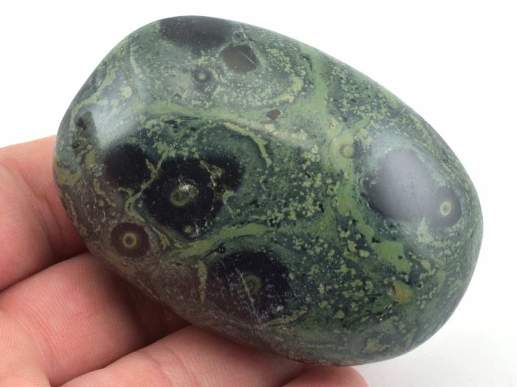 "Jaspis kambaba" neboli eldarit je charakteristický zelenými kruhy na černém pozadí. Ačkoli se často tvrdí, že jde o prokřemenělý fosilní stromatolit, německý institut (EPI) prokázal, že jde o vulkanickou horninu ryolit. Přesto jeho krása zůstává nepopiratelná, a díky své svěží zelené barvě zdobí interiéry po celém světě.