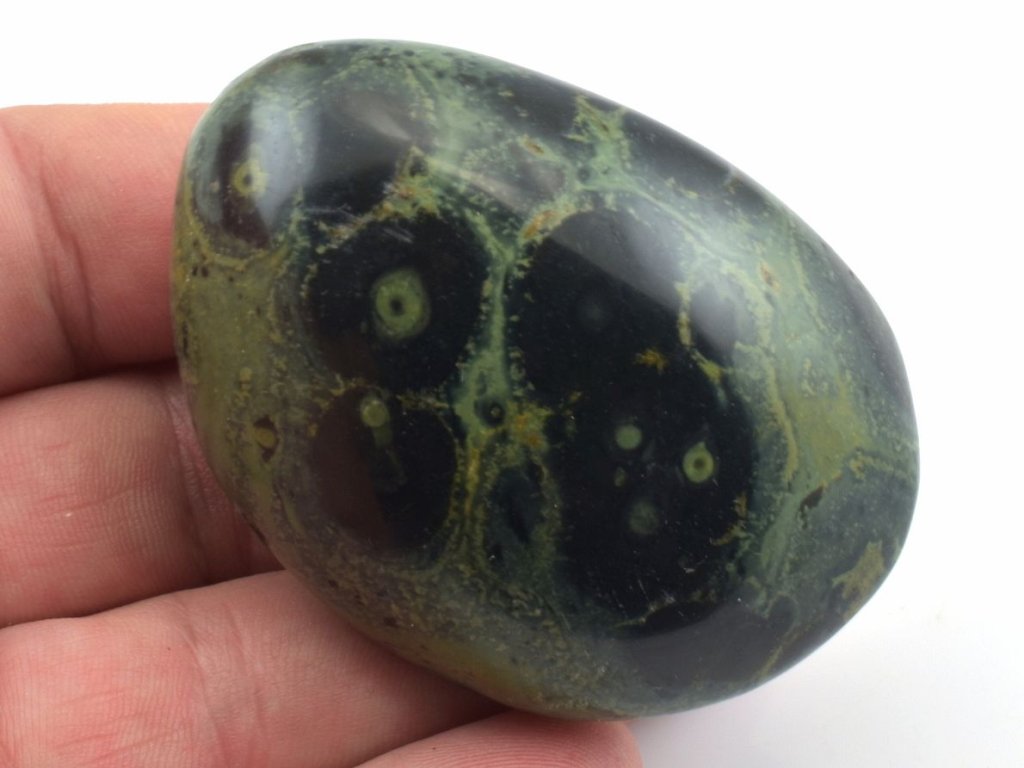 "Jaspis kambaba" neboli eldarit je charakteristický zelenými kruhy na černém pozadí. Ačkoli se často tvrdí, že jde o prokřemenělý fosilní stromatolit, německý institut (EPI) prokázal, že jde o vulkanickou horninu ryolit. Přesto jeho krása zůstává nepopiratelná, a díky své svěží zelené barvě zdobí interiéry po celém světě.