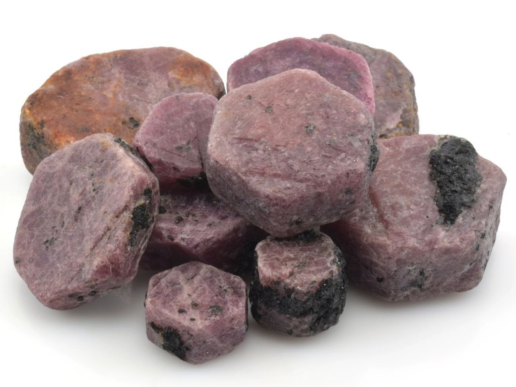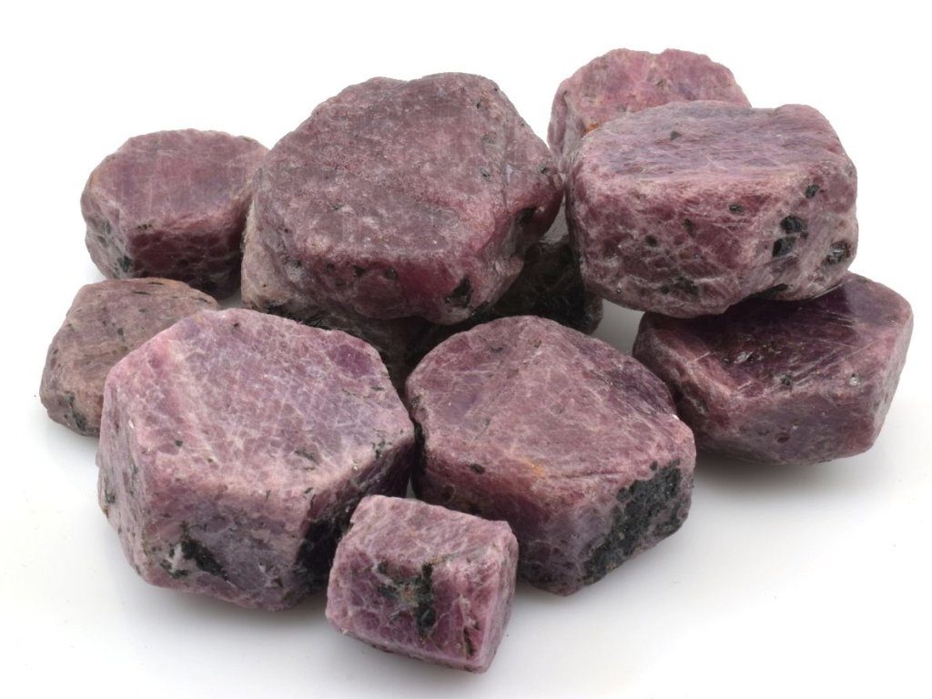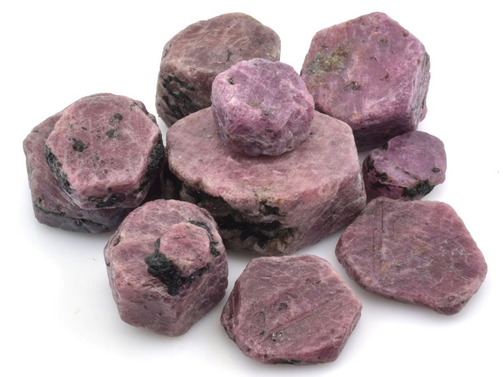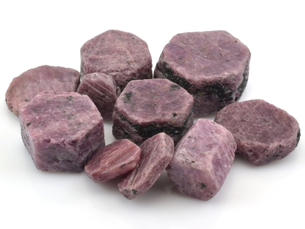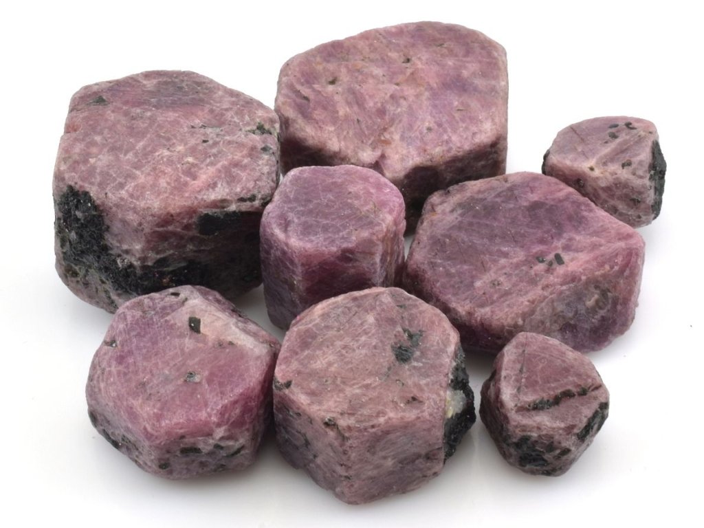 Balení 0,3 kg krystalů rubínu obsahuje z 90 - 100 % kompletní hexagonální, přírodní olejované krystaly rubínu (viz foto).