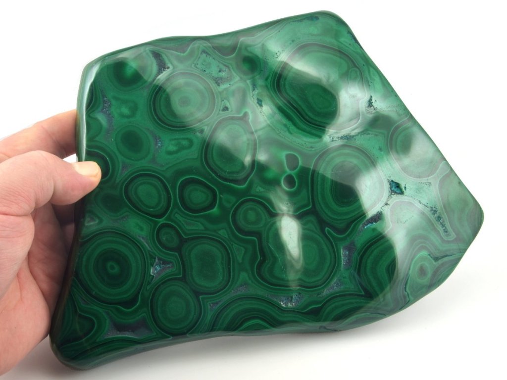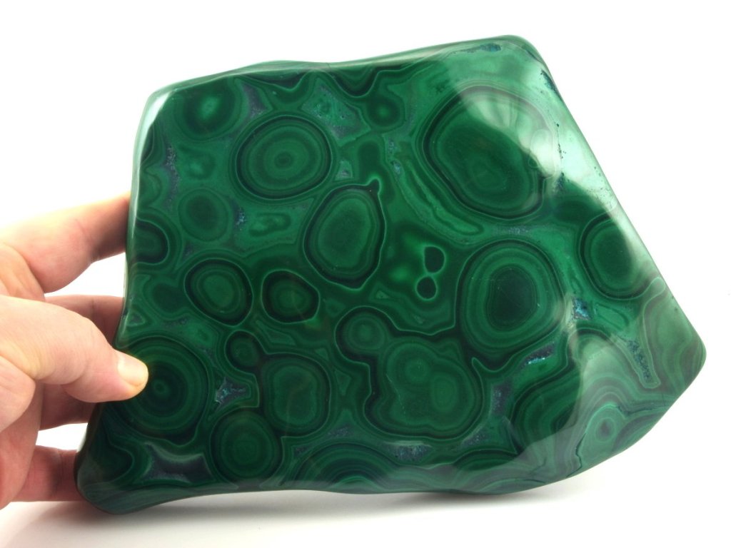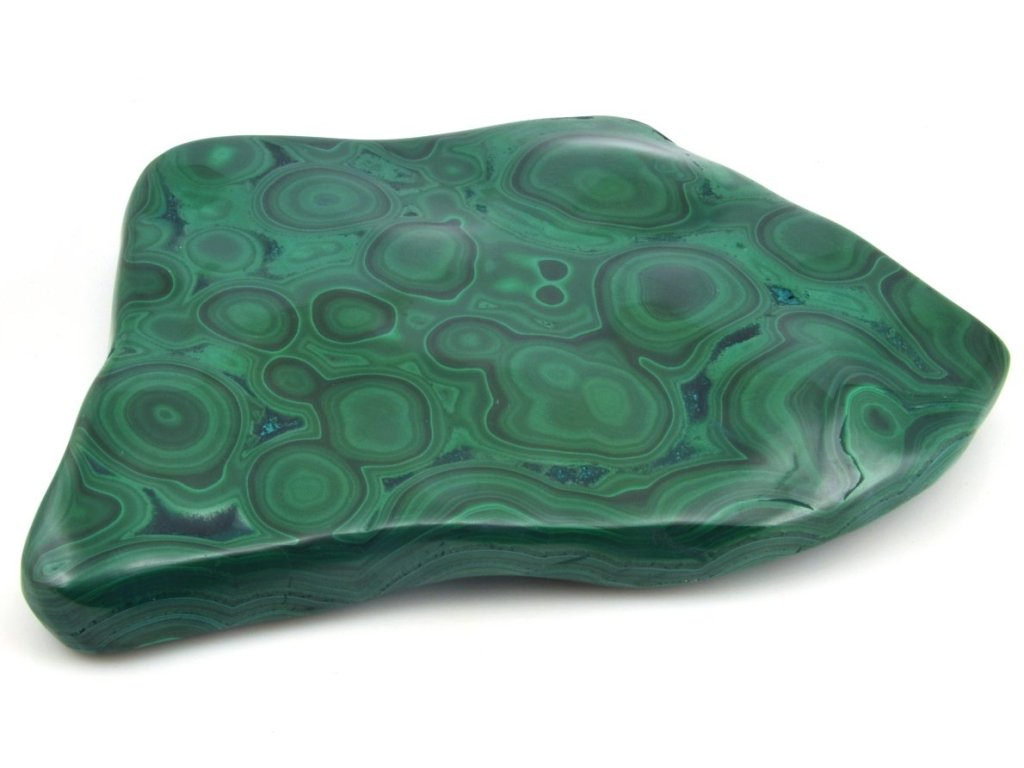 Jedná se o výběrový leštěný malachit s jedinečnou kresbou. Pochází z dolu na kobalt a měď v Demokratické republice Kongo, kde se dnes nacházejí jedny z nejbohatších nalezišť malachitu na světě. Tyto leštěné "free form" kusy jsou pečlivě opracovány tak, aby se zachovalo co nejvíce hmoty minerálu, a současně vynikly charakteristické kruhové a vrstevnaté vzory v různých odstínech zelené.
