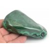 Volně tvarovaný vyleštěný kus malachitu.