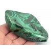 Výběrový leštěný malachit s jedinečnou kresbou a přírodní strukturou. Tento kus pochází z Demokratické republiky Kongo, kde se dnes nacházejí jedny z nejbohatších nalezišť malachitu na světě. Tyto leštěné "free form" kusy jsou pečlivě opracovány tak, aby se zachovalo co nejvíce hmoty minerálu, a současně vynikly charakteristické kruhové a vrstevnaté vzory v různých odstínech zelené.