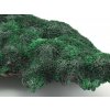 Zajímavá, temně zelená drúza jehličkovitých krystalů malachitu. Těsně na sobě natlačené krystaly tvoří tmavé hrbolky mezi nimiž vyrůstají delší lesklé, světle zelené jehličky viz detaily fotografie. Vzorek je tvořen z drtivé většiny malachitem, spodek drúzy obsahuje zbytky mateční horniny. Výběrový kus vysoké kvality.