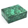 Leštěná malachitová krabička (šperkovnice) vyrobená ze skládaných bloků výběrového malachitu.