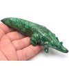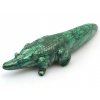 Malachit, známý sytě zelenou barvou, která se pohybuje od světle zelených až po temně zeleno-černé odstíny, je neprůhledný a snadno rozpoznatelný díky výrazným pruhům a vzorům. Tyto přírodní vzory dodávají každé sošce krokodýla jedinečný vzhled, který nenajdete na žádném jiném kusu. Pečlivé ruční leštění malachitu navíc zvýrazňuje jeho přirozenou krásu a hloubku.