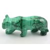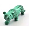Malachit, známý sytě zelenou barvou, která se pohybuje od světle zelených až po temně zeleno-černé odstíny, je neprůhledný a snadno rozpoznatelný díky výrazným pruhům a vzorům. Tyto přírodní vzory dodávají každé sošce jedinečný vzhled, který nenajdete na žádném jiném kusu. Pečlivé ruční leštění malachitu navíc zvýrazňuje jeho přirozenou krásu a hloubku.