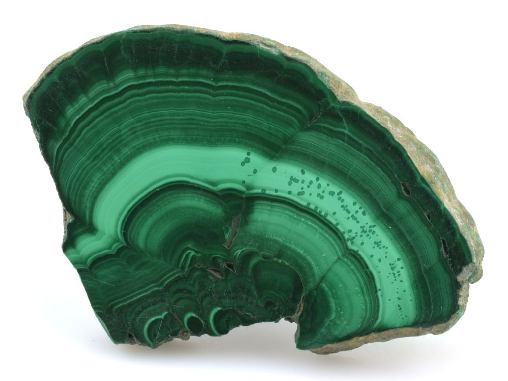 Název "malachit" pochází z řeckého slova "malache", což znamená sytě zelenou barvu, která tento minerál dokonale vystihuje. Barva malachitu je od světle zelené až po temné odstíny, s výraznými vzory, které připomínají letokruhy. Tyto unikátní vzory jsou jedním z hlavních důvodů, proč je malachit tolik ceněný a oblíbený.