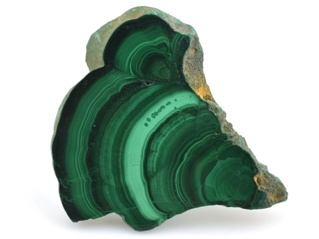 Název "malachit" pochází z řeckého slova "malache", což znamená sytě zelenou barvu, která tento minerál dokonale vystihuje. Barva malachitu je od světle zelené až po temné odstíny, s výraznými vzory, které připomínají letokruhy. Tyto unikátní vzory jsou jedním z hlavních důvodů, proč je malachit tolik ceněný a oblíbený.