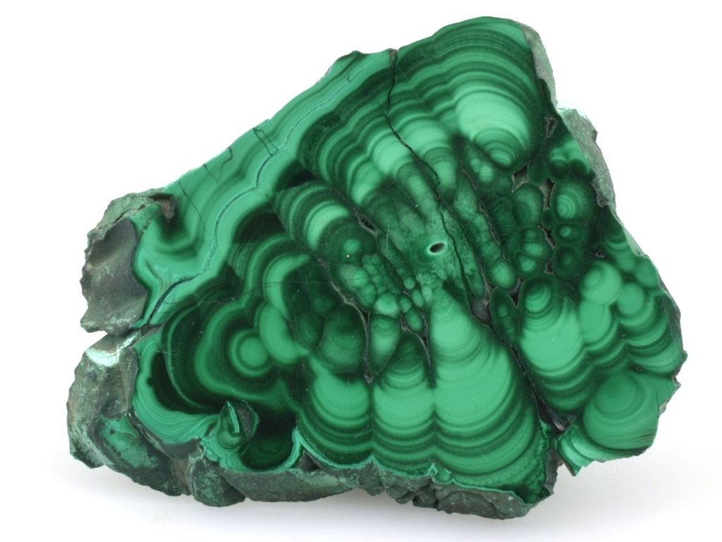 Název "malachit" pochází z řeckého slova "malache", což znamená sytě zelenou barvu, která tento minerál dokonale vystihuje. Barva malachitu je od světle zelené až po temné odstíny, s výraznými vzory, které připomínají letokruhy. Tyto unikátní vzory jsou jedním z hlavních důvodů, proč je malachit tolik ceněný a oblíbený.