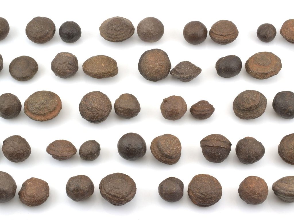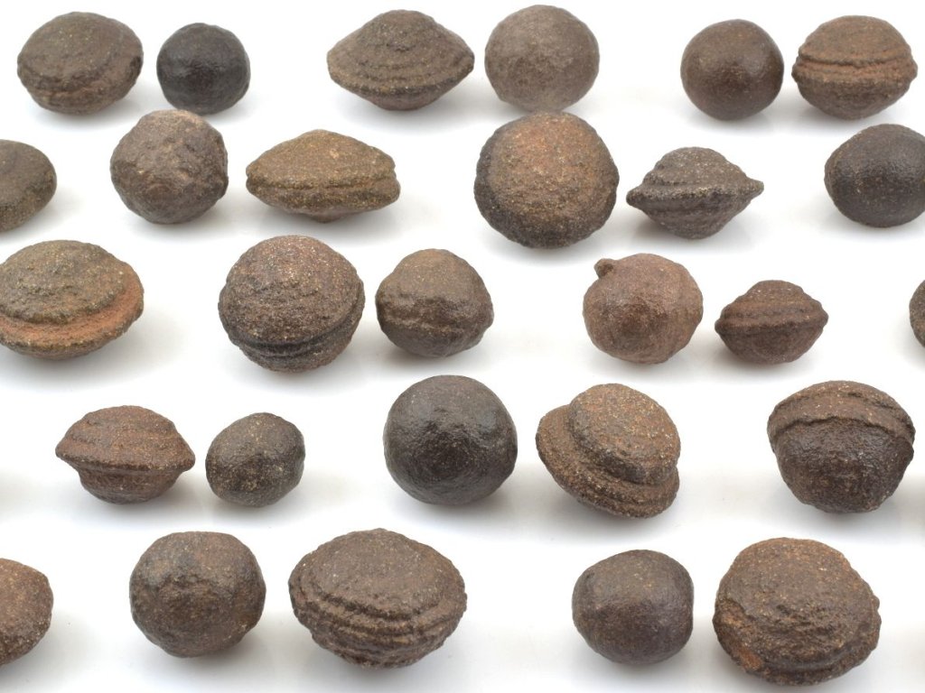 Na foto: Kuličky Moqui Marbles malé velikosti. Hmotnost páru se pohybuje mezi 10 až 20 g. Rozměry jednotlivých kamenů jsou mezi 1,0 až 2,5 cm.