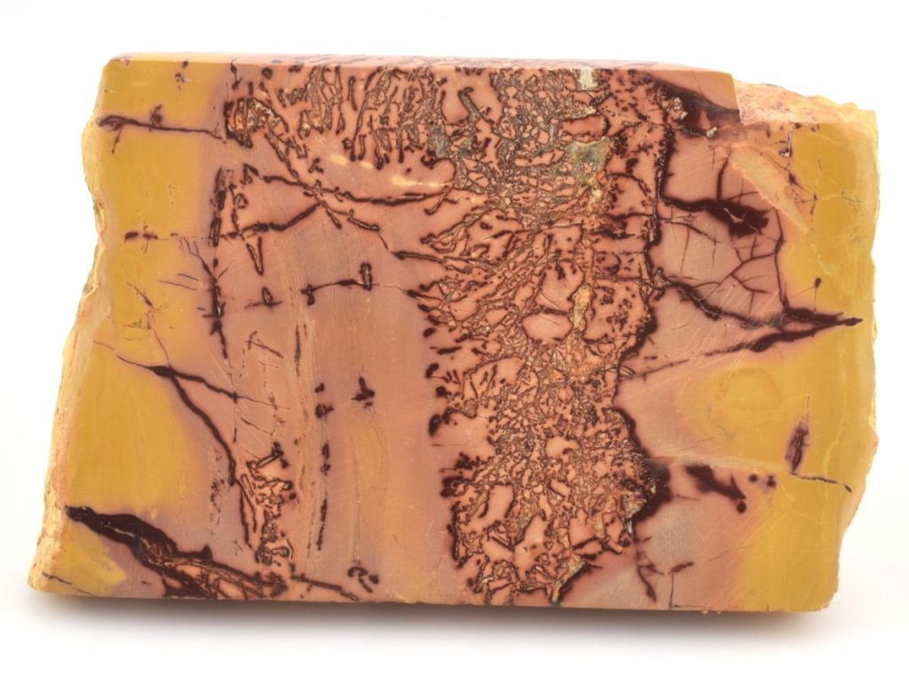 Jedná se o ozdobný kámen, jehož obchodní název vychází z mookaitu – podobně zbarveného australského jaspisu. Marocký materiál se s australským mookaitem skutečně barevně podobá. Na prasklinách jsou patrné nepravidelné červené, podélně protažené ornamenty, které příjemně kontrastují se světle žlutokrémovým pozadím.