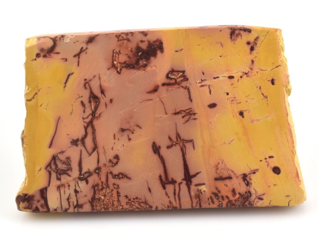 Jedná se o ozdobný kámen, jehož obchodní název vychází z mookaitu – podobně zbarveného australského jaspisu. Marocký materiál se s australským mookaitem skutečně barevně podobá. Na prasklinách jsou patrné nepravidelné červené, podélně protažené ornamenty, které příjemně kontrastují se světle žlutokrémovým pozadím.