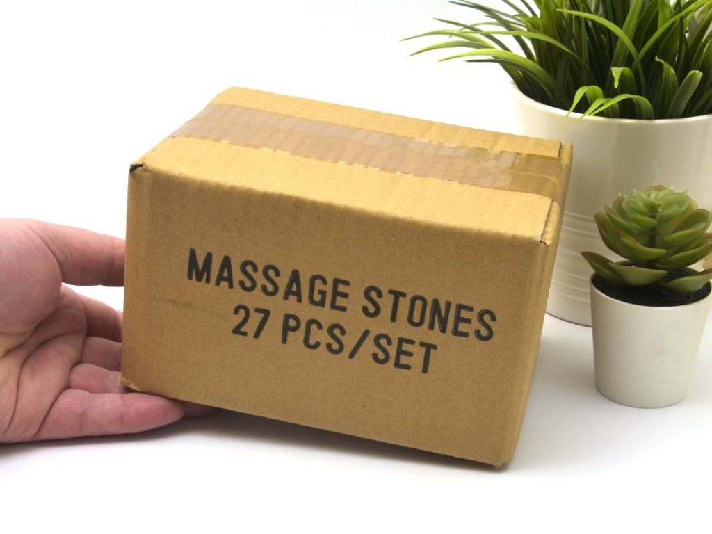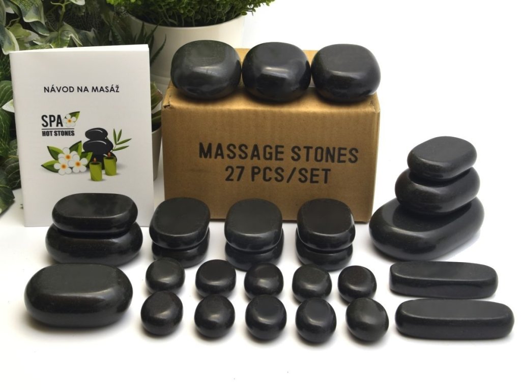 Sada obsahuje 27 kamenů vhodných pro masáž horkými kameny. Kameny jsou uloženy v papírové krabici a součástí balení je tištěný návod k masáži (brožura 18 stran ve formátu A6). Kameny v sadě jsou speciálně vybrány tak, aby vyhovovaly domácím uživatelům i profesionálním masérům a wellness centrům.