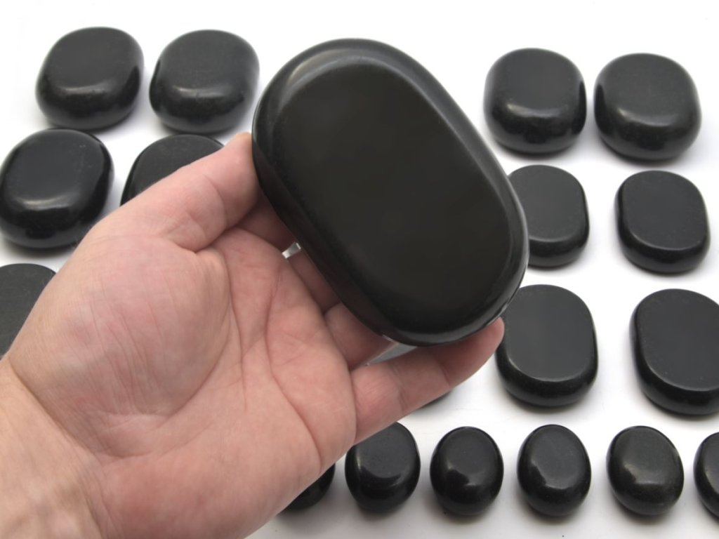 Povrch kamenů je upraven kosmetickým voskem, čímž se kameny stávají hladšími a nesají tolik masážního oleje. Kameny v sadě jsou ručně broušené, a proto jsou možné drobné rozměrové odchylky.