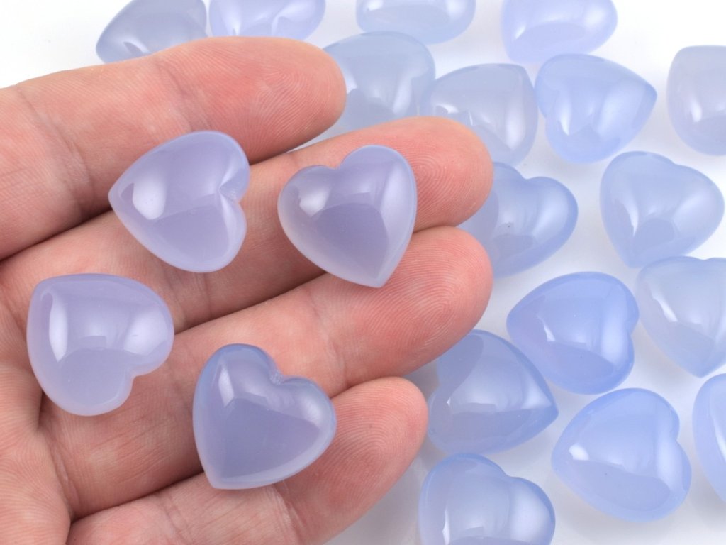 Turecký chalcedon má charakteristický mléčně modrý až levandulově modrý odstín s hedvábným vnitřním leskem.