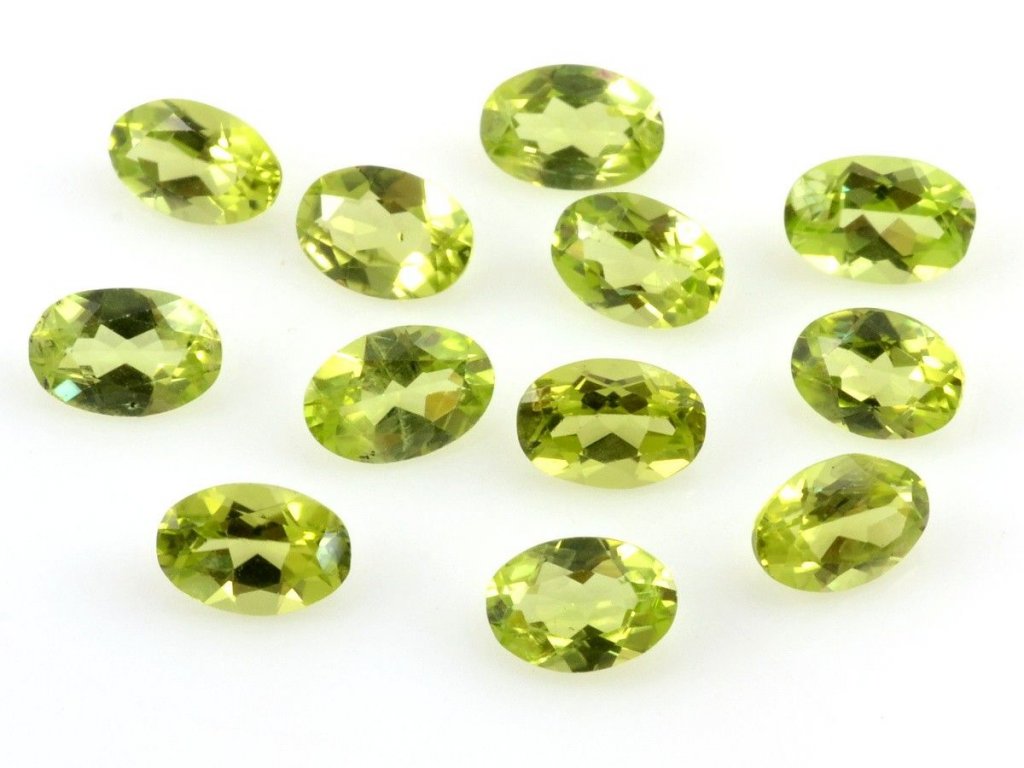 Prodej jednoho kusu fasetovaného olivínu o rozměrech 6 x 4 mm a kvalitě AAA.