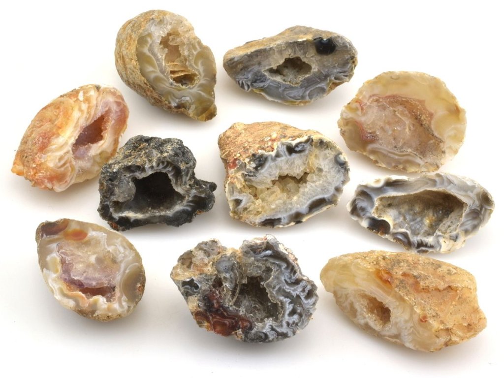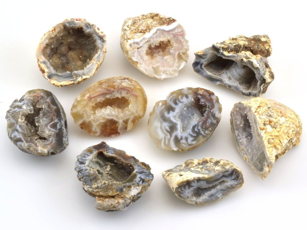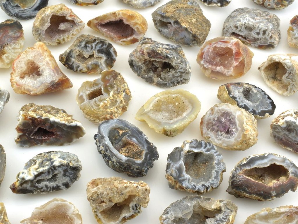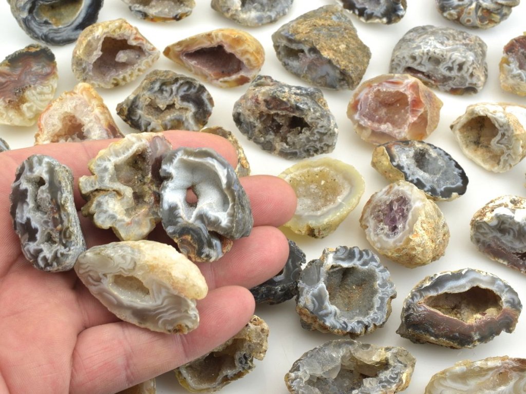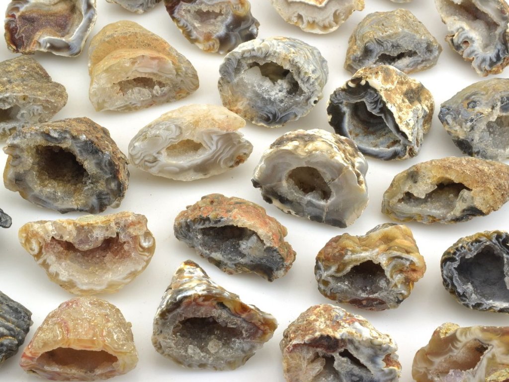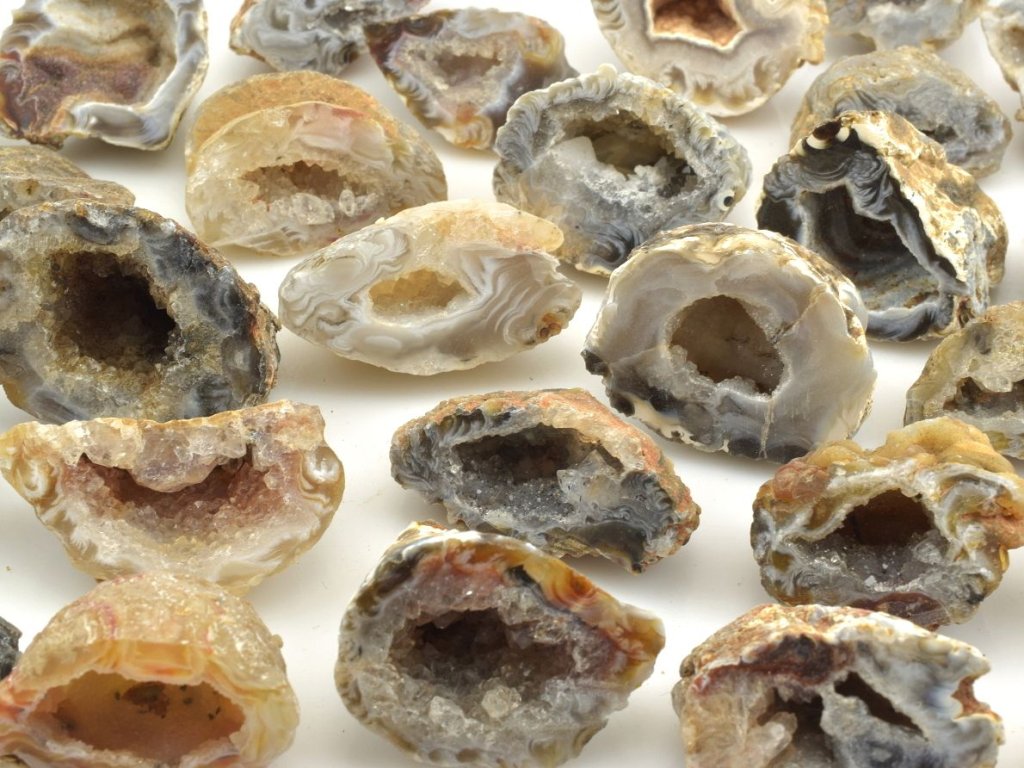 Jednostranně leštěná geodka peříčkového achátu z Brazílie s jemnou kresbou. Peříčkový achát je typ achátu, většinou s inkluzemi ve tvaru peříček, v barvách od černé a červené přes žlutou, hnědou po bílou a fialovou. Tyto vzory vznikaly miliony let, kdy se minerály ukládaly v dutinách vulkanických hornin ve vrstvách a vytvořily tak fascinující struktury. Po rozpůlení geodky a následném leštění se u peříčkového achátu odkryje nádherná kresba a často jsou v dutině narostlé i krystalky křišťálu, ametystu a dalších minerálů.