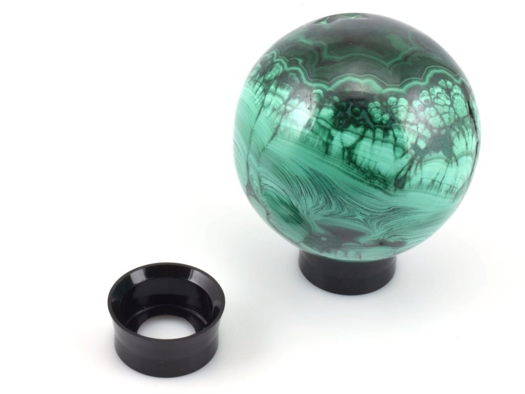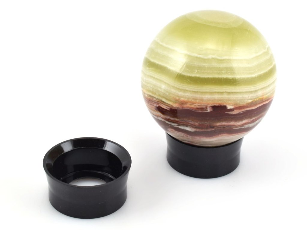 Podstavec je nejvhodnější pro koule o průměru 4–8 cm, ale lze na něj bezpečně umístit i koule většího průměru. Černá barva působí neutrálně a elegantně, takže zvýrazní barvu a strukturu vystaveného kamene.
