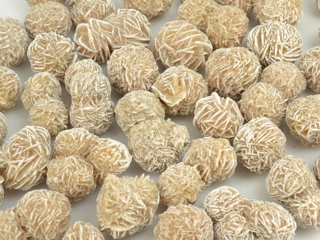 Pouštní růže z Mexika vynikají velmi jemnými lištovitými krystaly. Jedná se o růžicovité agregáty sádrovce, které vznikají v pouštích vysrážením kapilární vody. Kontrastní bílé konce růží z naší nabídky vznikly obroušením krystalů a odhalením bílého sádrovce.