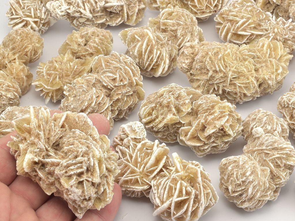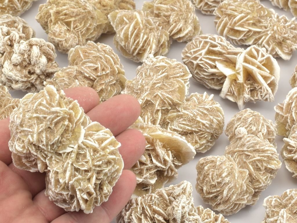 Pouštní růže z Mexika vynikají velmi jemnými lištovitými krystaly. Jedná se o růžicovité agregáty sádrovce, které vznikají v pouštích vysrážením kapilární vody. Kontrastní bílé konce růží z naší nabídky vznikly obroušením krystalů a odhalením bílého sádrovce.