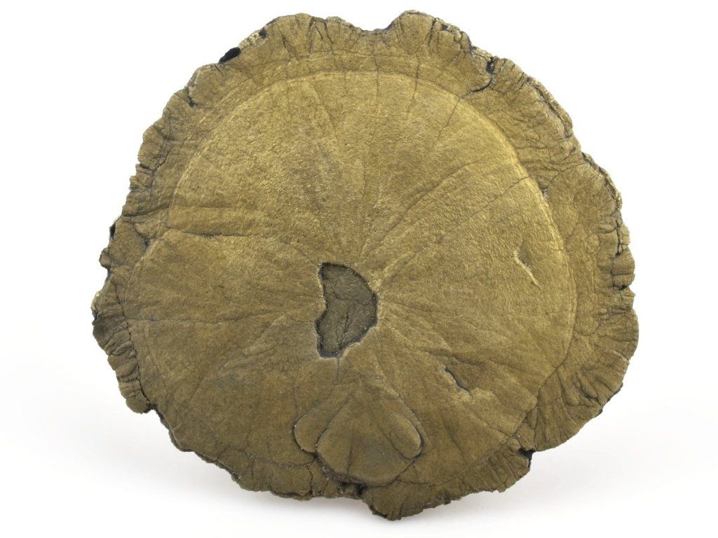 Tento konkrétní kus pyritového slunce je kompletní po celém obvodu. Typický radiální (paprsčitý) vzhled vytváří atraktivní strukturu s jemným kovovým leskem a třpytivými odlesky.