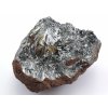 Radiálně paprsčitý agregát ocelově šedočerných, kovově lesklých, jehlicovitých krystalů pyroluzitu v mateční hornině.