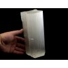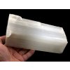 Štípaný blok selenitu z Maroka. Selenit je vláknitá odrůda sádrovce, která je oblíbená mezi milovníky drahých kamenů díky svému perleťovému odlesku, který se pohybuje po celém kameni podle úhlu dopadajícího světla.