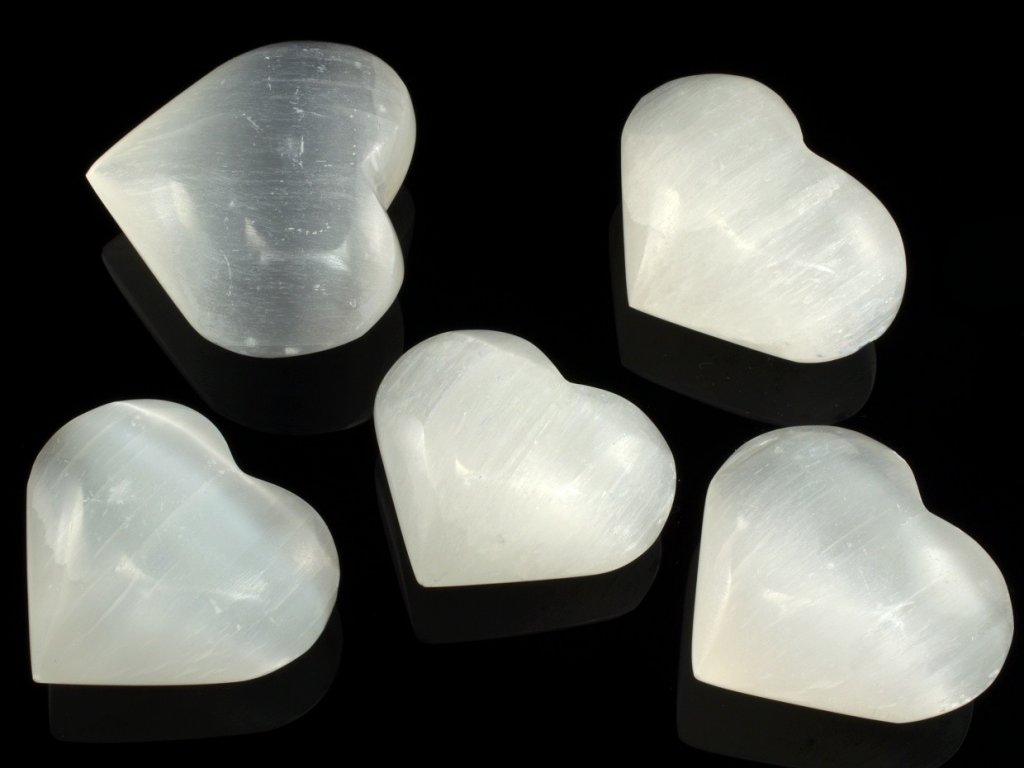 Srdce ze selenitu vyniká krásným "měsíčním" leskem, který podle dopadajícího světla cestuje po celém srdci a vytváří dojem klidné záře.