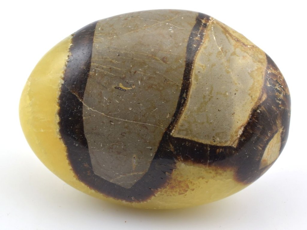 Madagaskarské žlutočerné septárie jsou sedimentární konkrece vzniklé ve starověkých mořských sedimentech. Jejich charakteristický vzhled tvoří žluté až medově zbarvené kalcitové výplně puklin v kontrastu s tmavou, jílovito-karbonátovou mateční horninou. Pukliny vznikly při smršťování konkrecí během vzniku a byly následně vyplněny minerály jako kalcit, aragonit či oxidy železa.