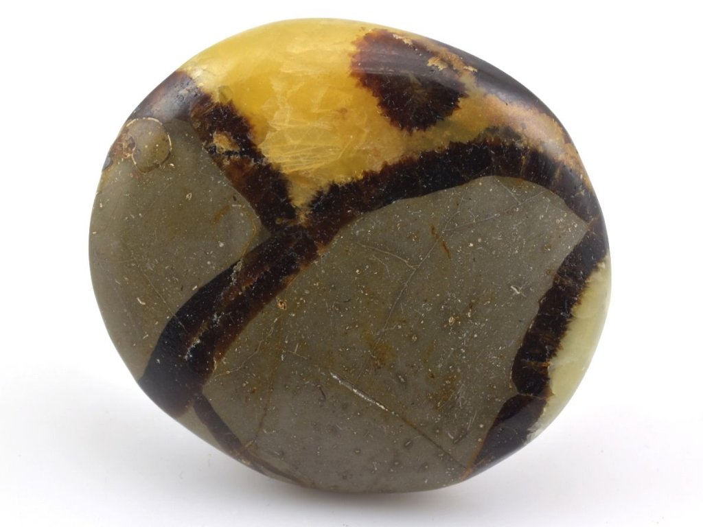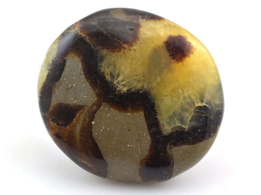 Madagaskarské žlutočerné septárie jsou sedimentární konkrece vzniklé ve starověkých mořských sedimentech. Jejich charakteristický vzhled tvoří žluté až medově zbarvené kalcitové výplně puklin v kontrastu s tmavou, jílovito-karbonátovou mateční horninou. Pukliny vznikly při smršťování konkrecí během vzniku a byly následně vyplněny minerály jako kalcit, aragonit či oxidy železa.