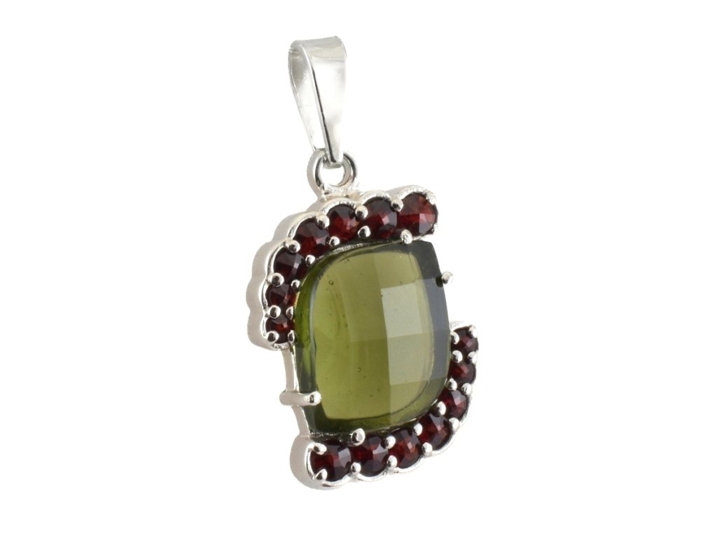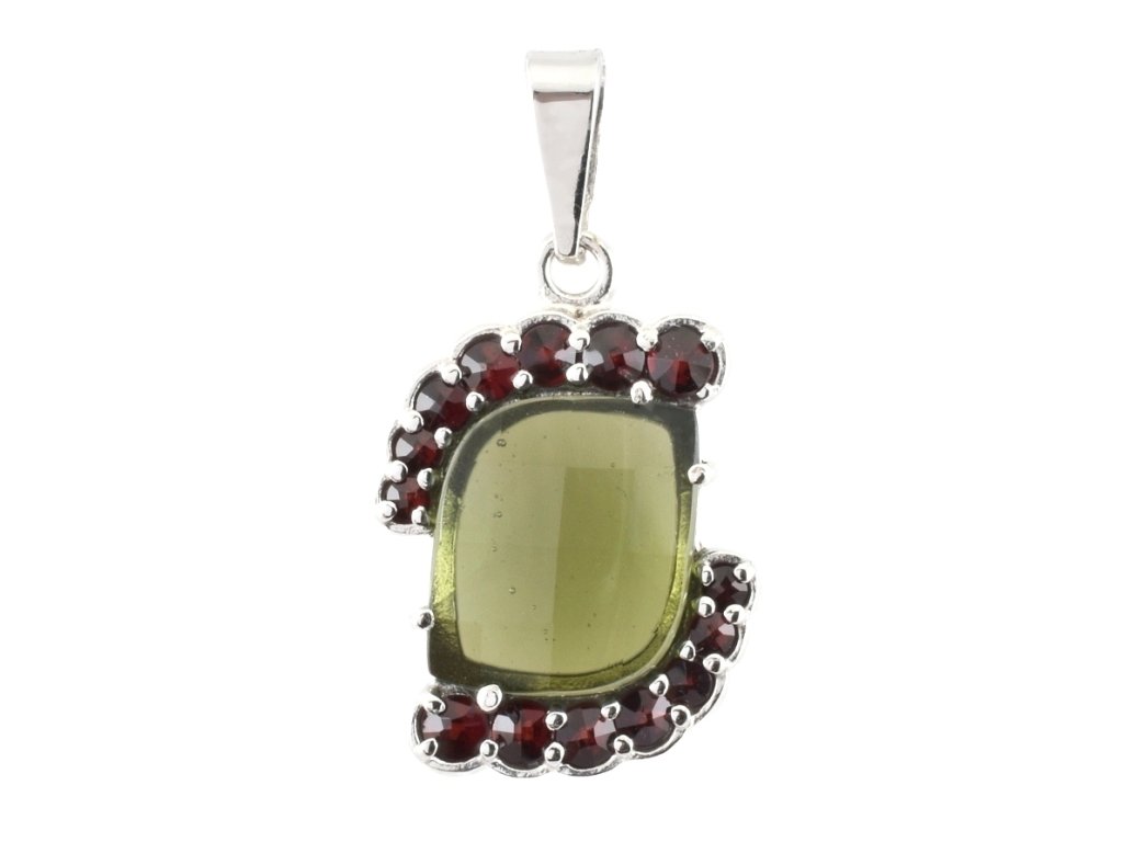 Stříbrný přívěsek s českým granátem a vltavínem.