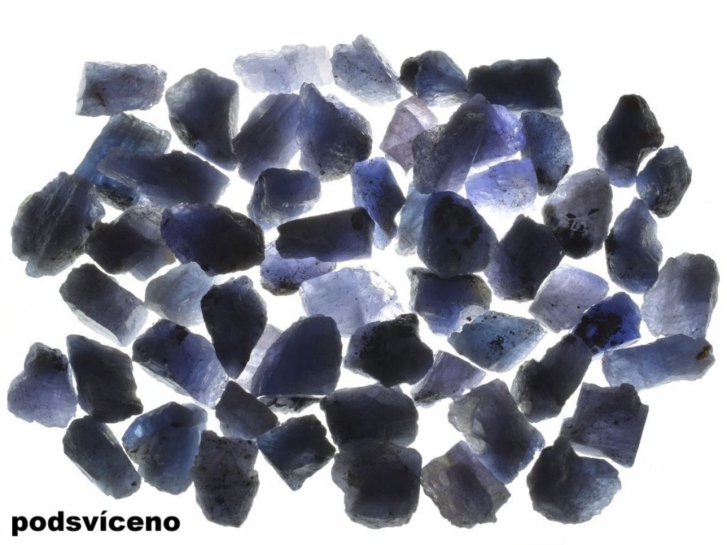 Velikost tanzanitu: cca 10 - 15 mm