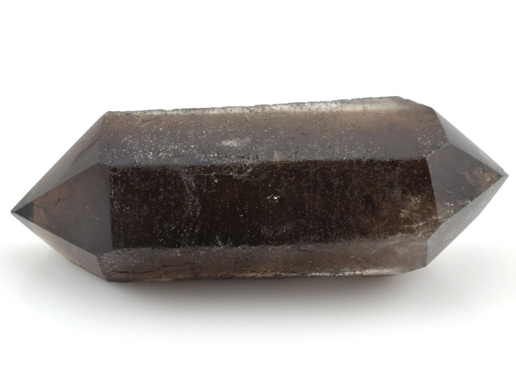 Brazilský krystal záhnědy s broušenými hroty na obou koncích, jejichž plochy jsou vyleštěny do vysokého lesku. Záhněda se v přírodě objevuje v celé škále hnědých odstínů – od světlé a jemně kouřové až po sytě tmavě hnědou. Nejintenzivnější formou je morion, jehož barva může být tak temná, že působí téměř černě.