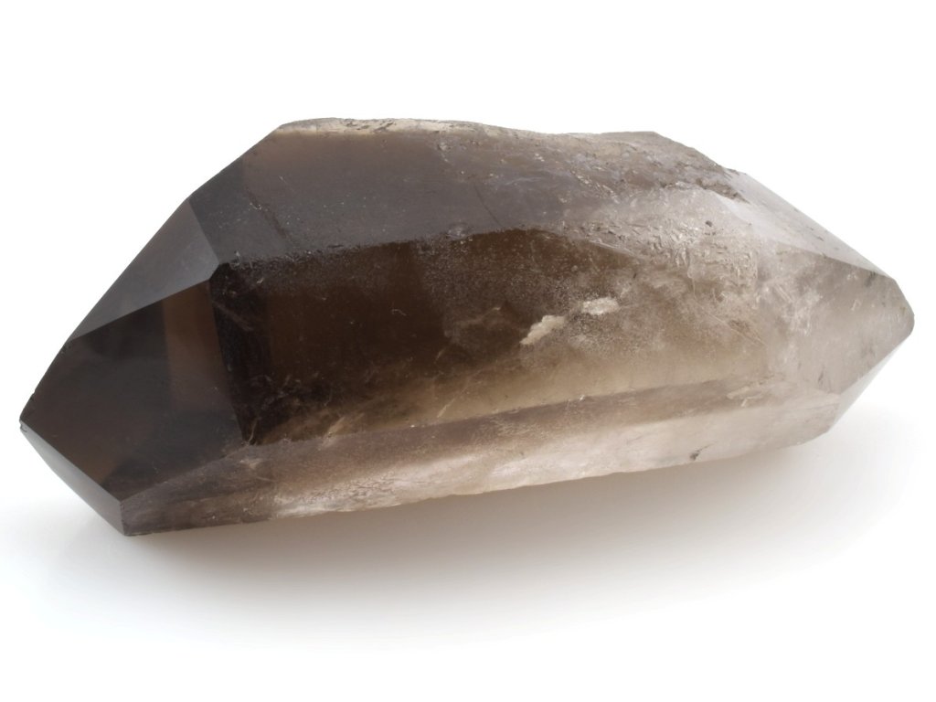 Brazilský krystal záhnědy s broušenými hroty na obou koncích, jejichž plochy jsou vyleštěny do vysokého lesku. Záhněda se v přírodě objevuje v celé škále hnědých odstínů – od světlé a jemně kouřové až po sytě tmavě hnědou. Nejintenzivnější formou je morion, jehož barva může být tak temná, že působí téměř černě.
