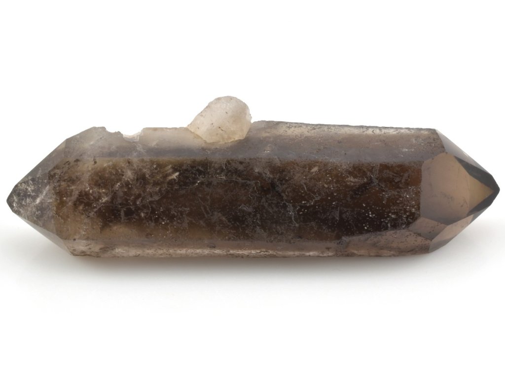 Brazilský krystal záhnědy s broušenými hroty na obou koncích, jejichž plochy jsou vyleštěny do vysokého lesku. Záhněda se v přírodě objevuje v celé škále hnědých odstínů – od světlé a jemně kouřové až po sytě tmavě hnědou. Nejintenzivnější formou je morion, jehož barva může být tak temná, že působí téměř černě.
